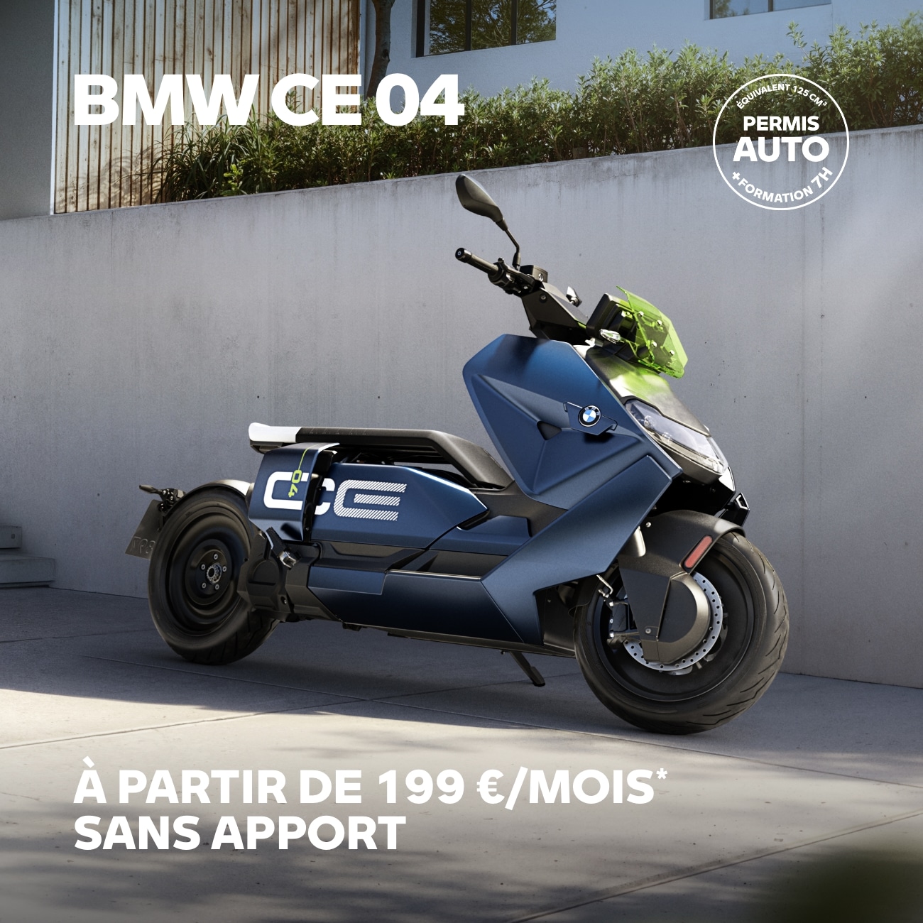 Le nouveau BMW CE 04 est toujours en avance sur son temps. Ce scooter 100% électrique le prouve avec son équipement de série complet : écran TFT de 10,25 pouces, trois modes de conduite, sans oublier son compartiment de rangement avec prise USB-C. En ce moment, profitez du BMW CE 04 à partir de 12 600 €*, également disponible dès 199 €/mois** sans apport.