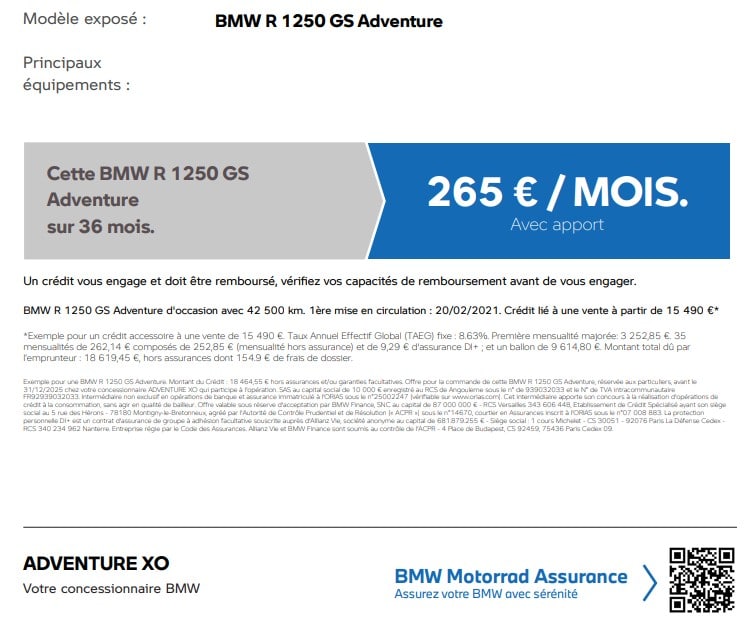 ADVENTURE BMW Motorrad AngoulêmeLivraison possible sur toute la France