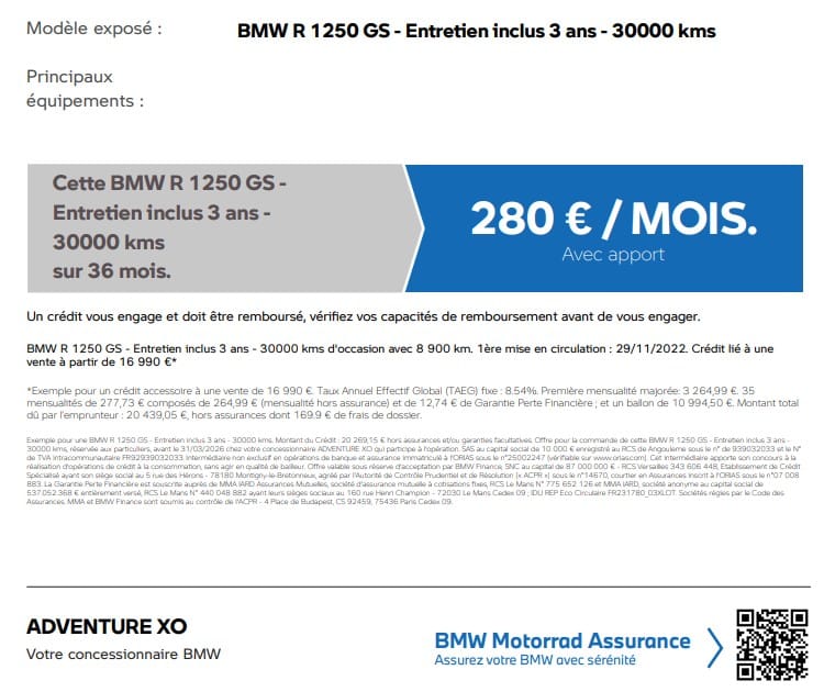 Adventure BMW recueille vos données afin de traiter votre demande. Conformément au Règlement Général sur la Protection des Données (RGPD), vous bénéficiez d'un droit de rectification, de suppression, de limitation ou d'opposition au traitement de vos données. Pour en savoir plus, merci de consulter la page Politique de confidentialité.
