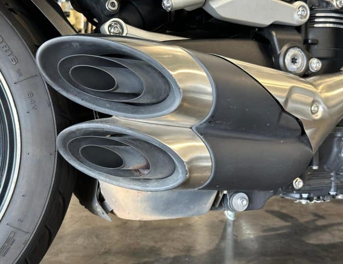 Possibilité de modifier les cale-pieds conducteur pour installer ceux du modèle R : surcoût 650€ (pièces Triumph + pose)