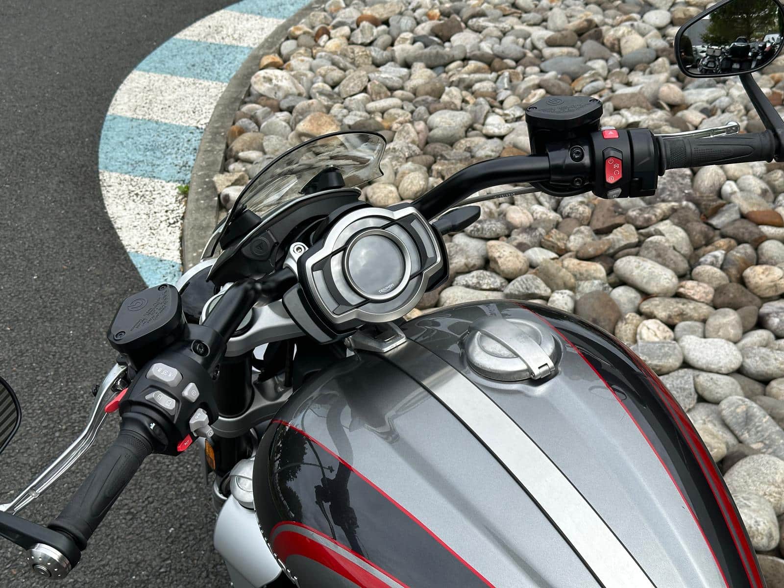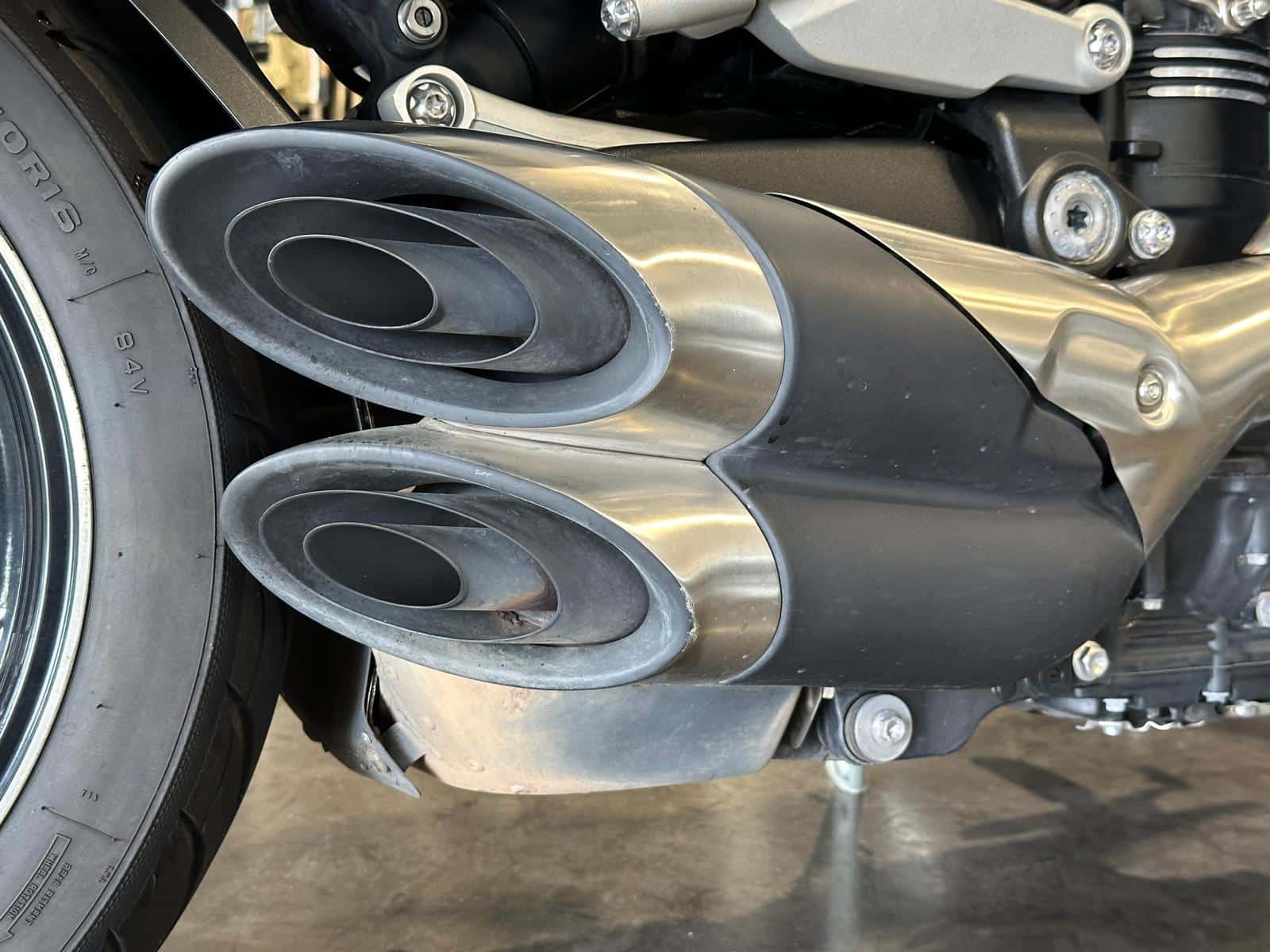 Possibilité de modifier les cale-pieds conducteur pour installer ceux du modèle R : surcoût 650€ (pièces Triumph + pose)